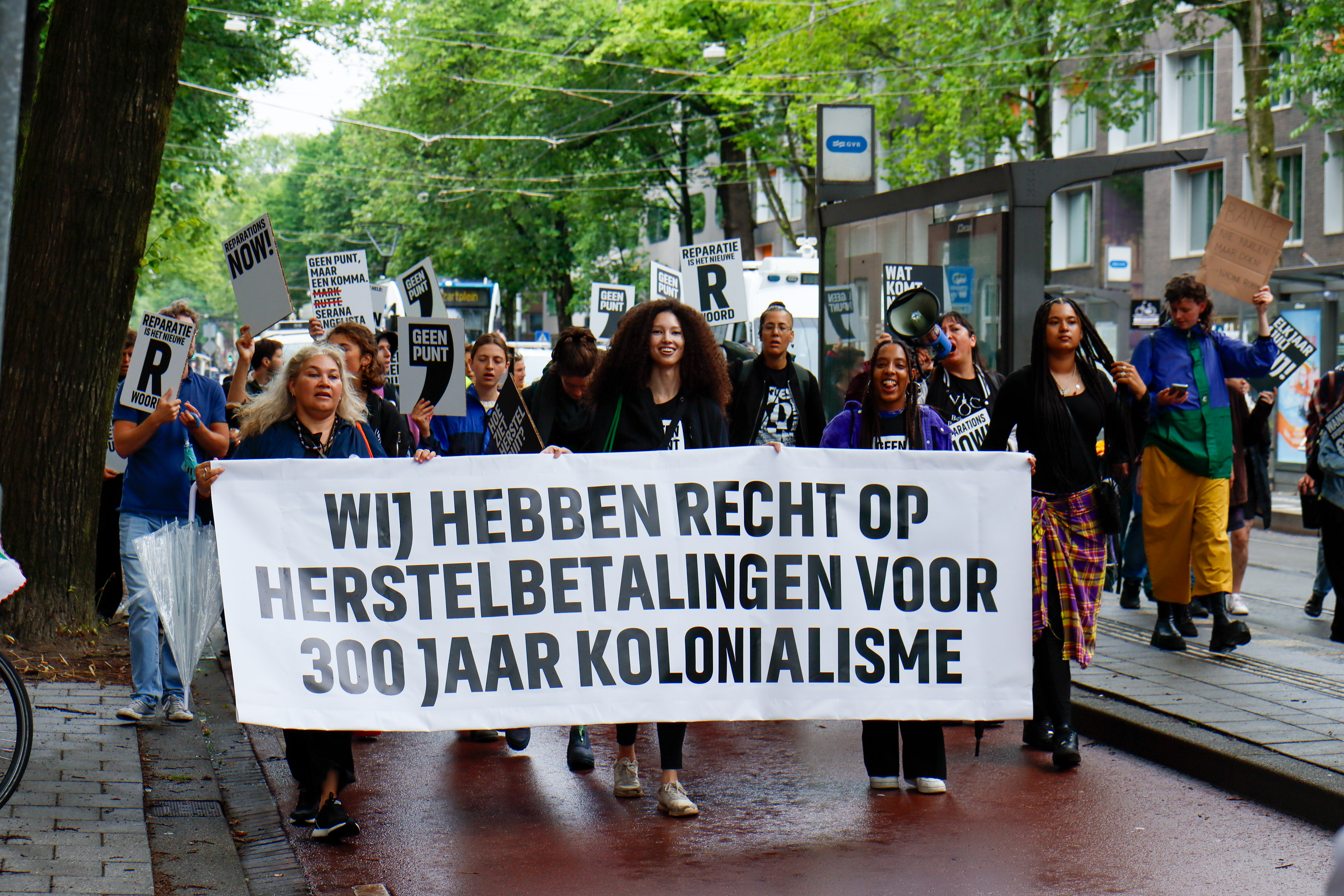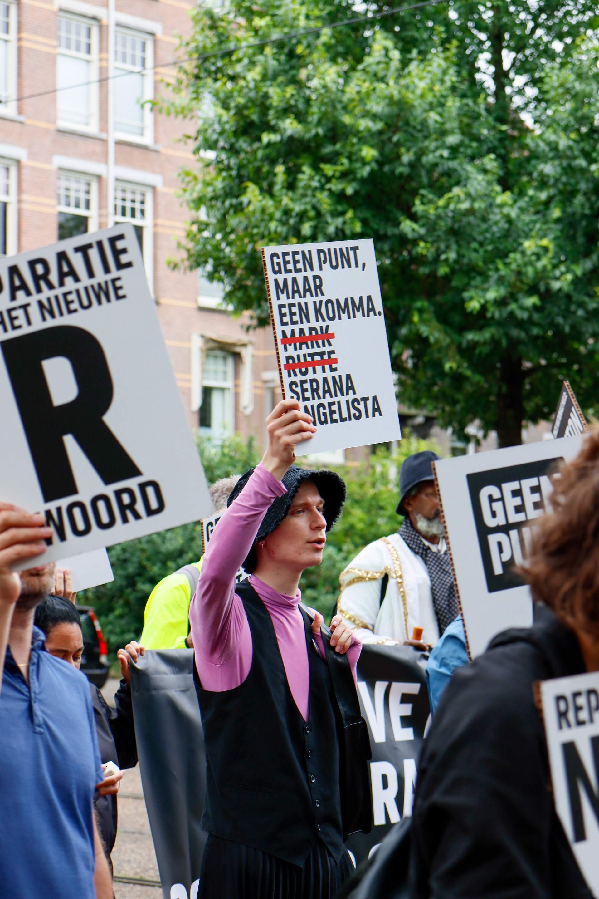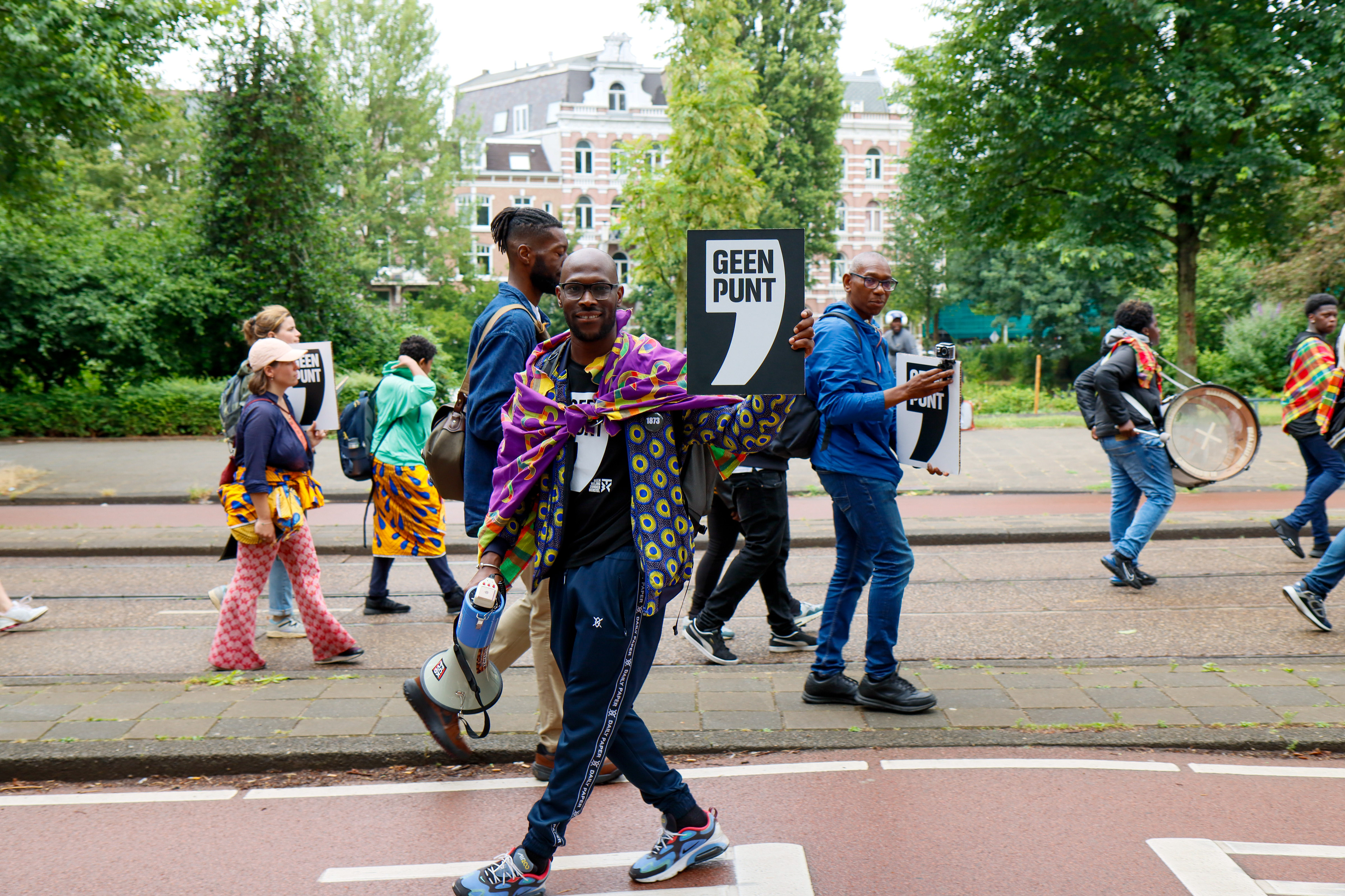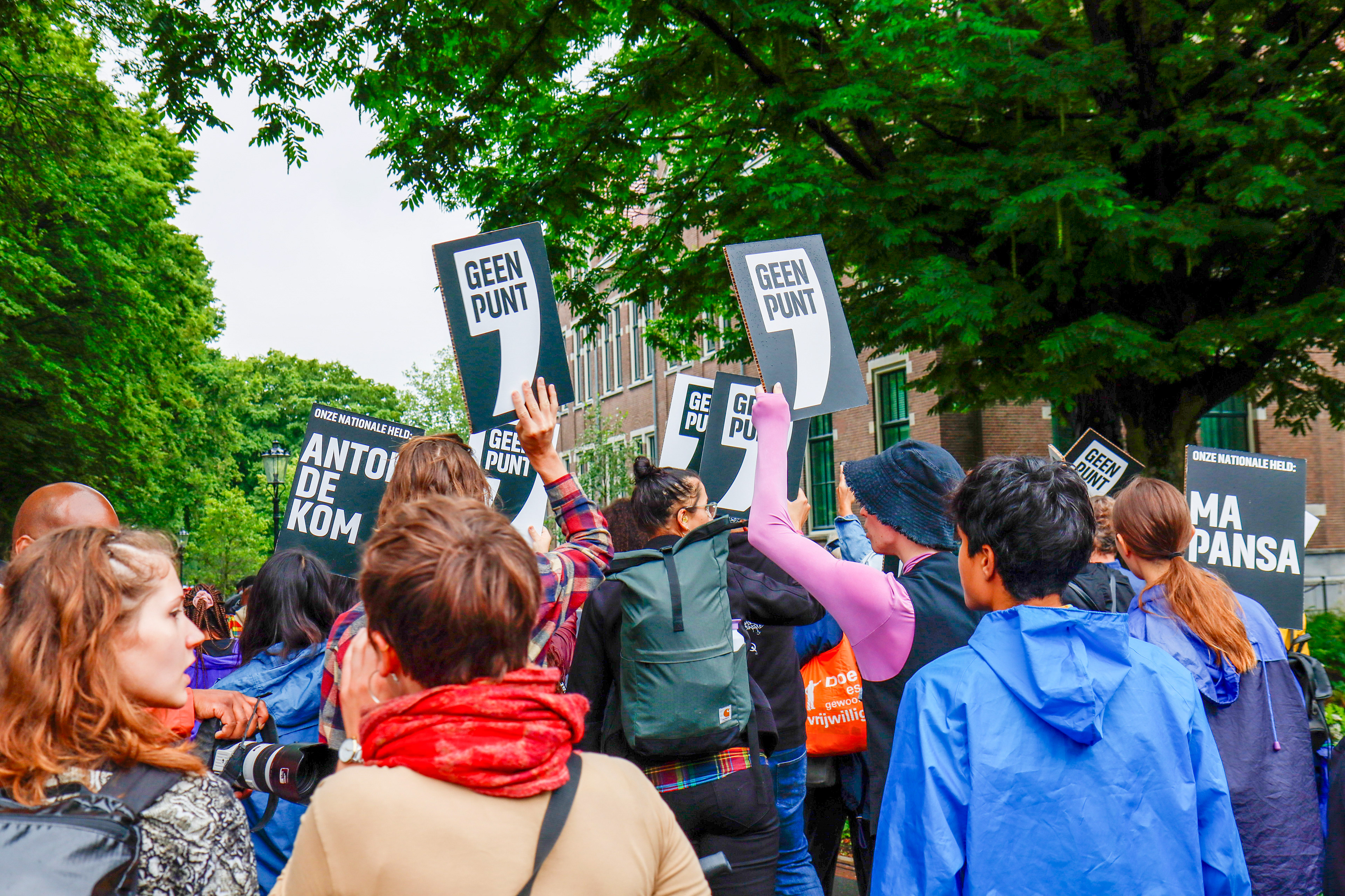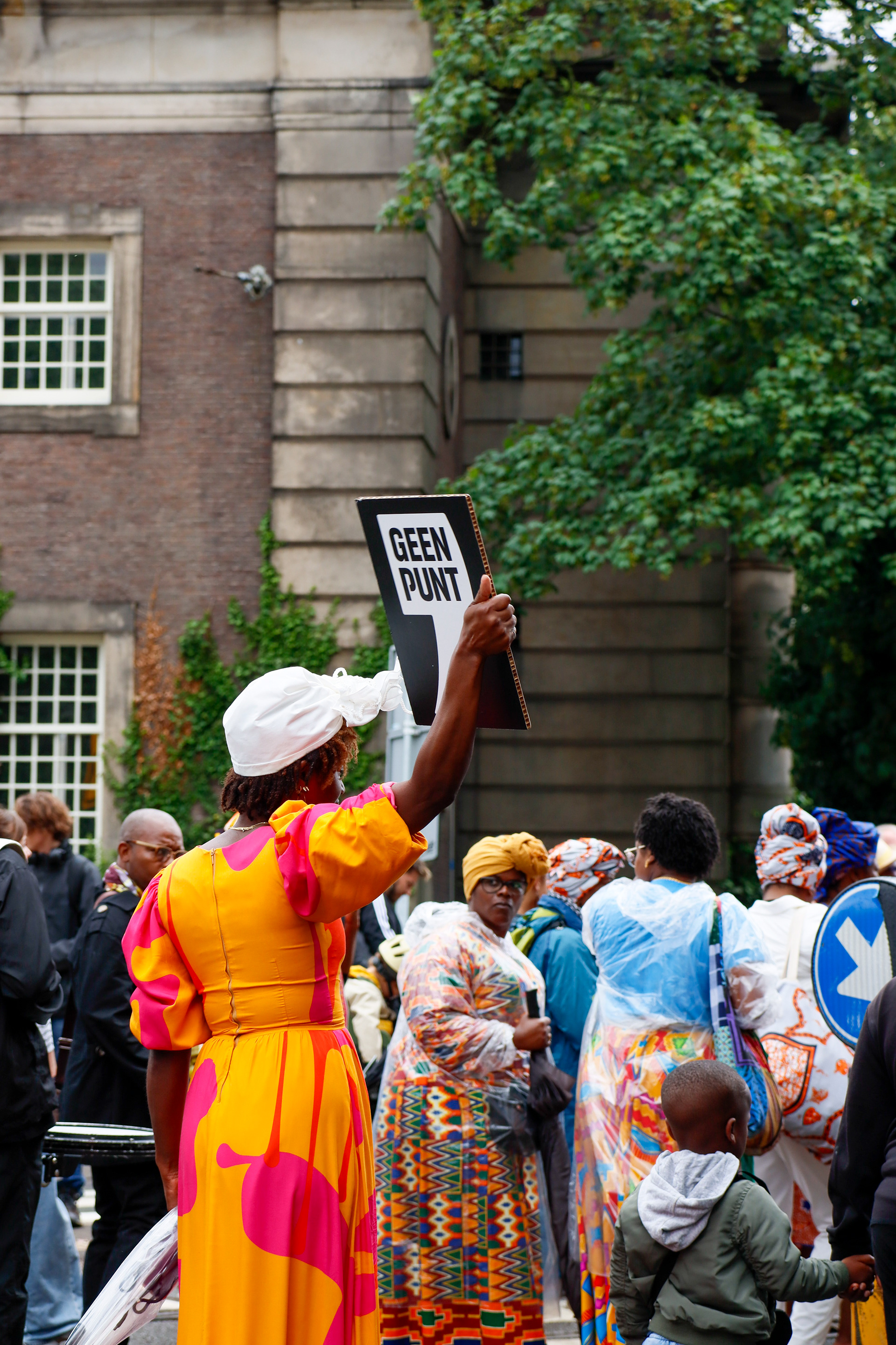 Documentation of the demonstration at Keti Koti 2023 where all banners and signs are part of the Geen Punt campaign created by BUROBRAAK. Photos commissioned by BUROBRAAK.