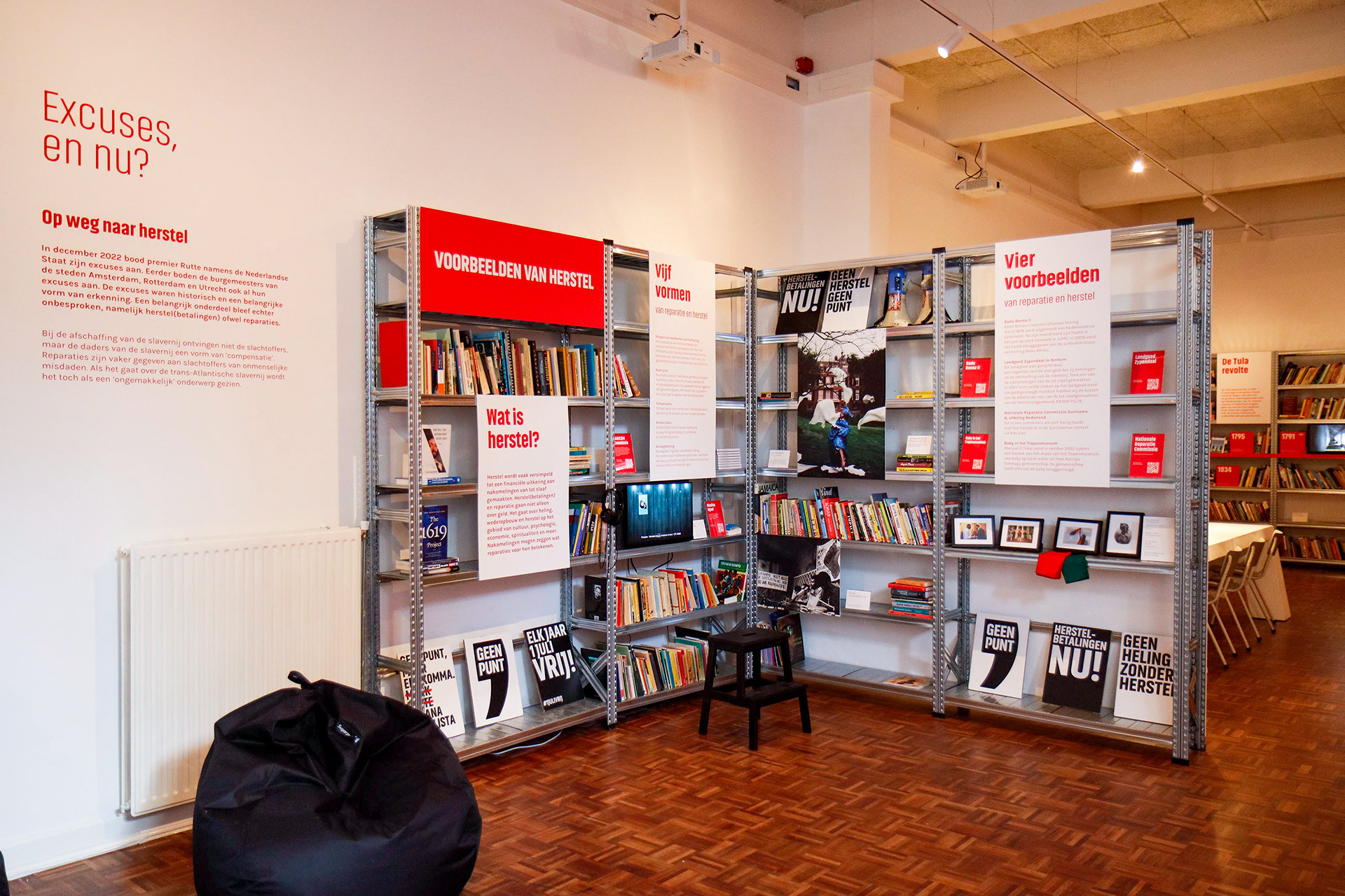 Documentation of the exhibition Geen Heling Zonder Herstel (No Healing Without Restoration) made by BUROOBRAAK for The Black Archives in Amsterdam. Photos commissioned by BUROBRAAK.