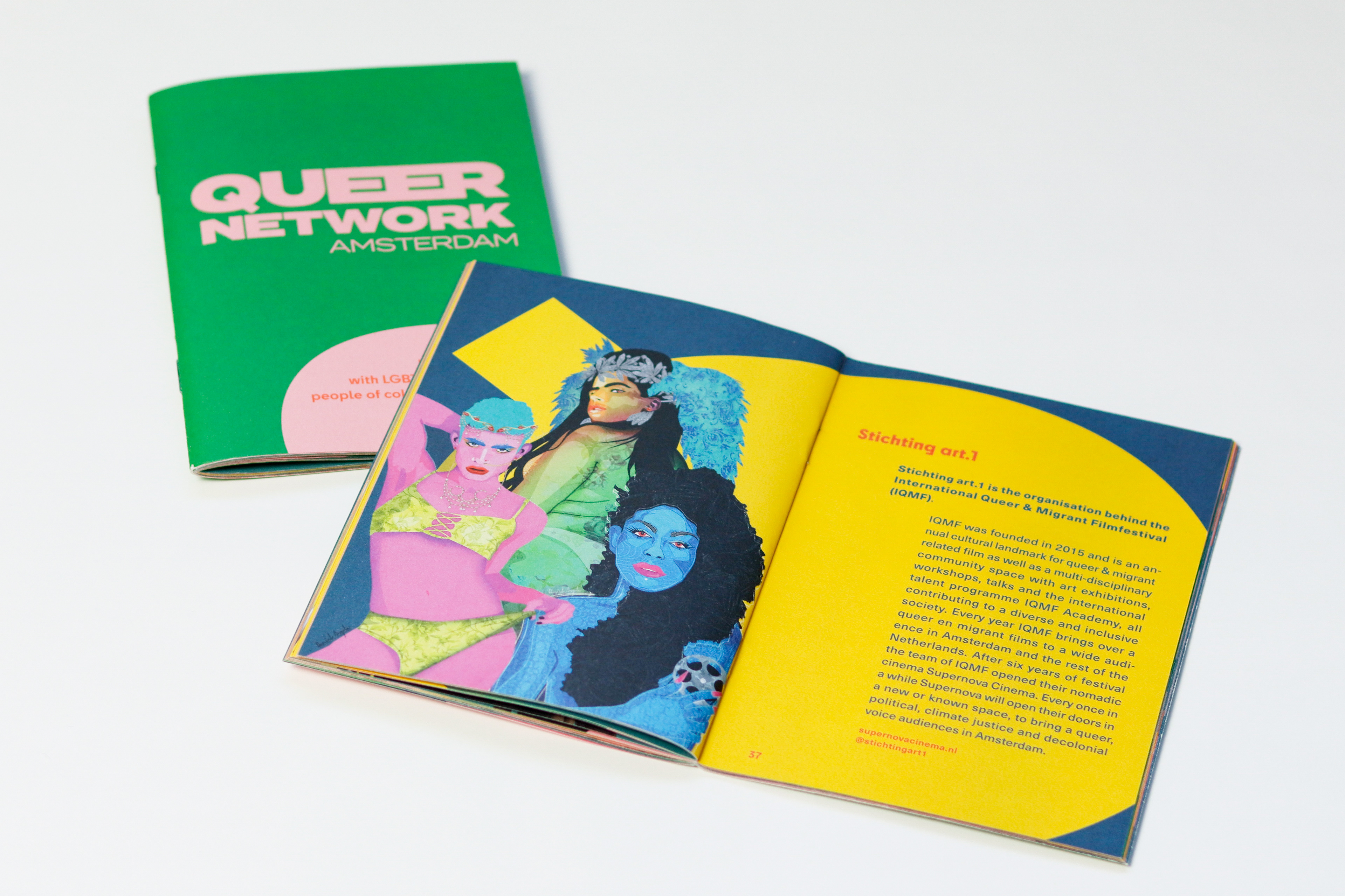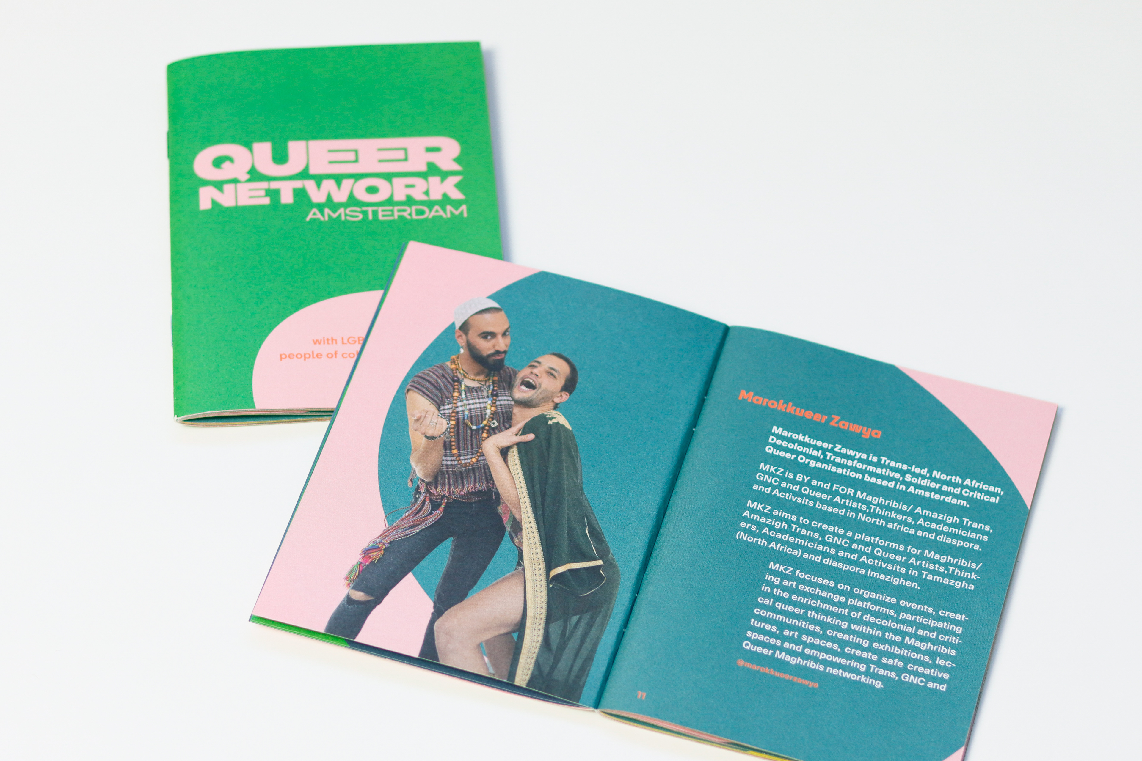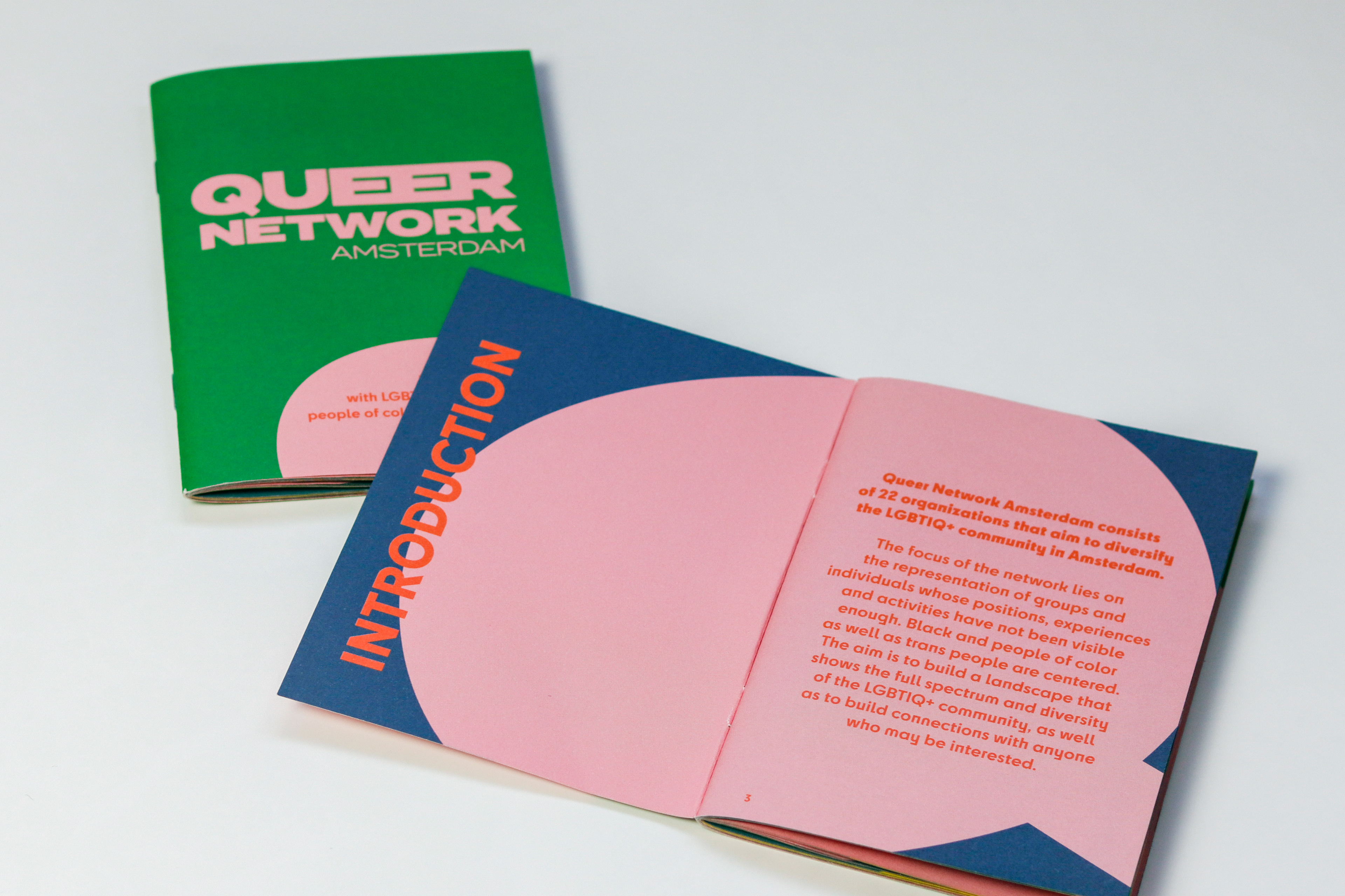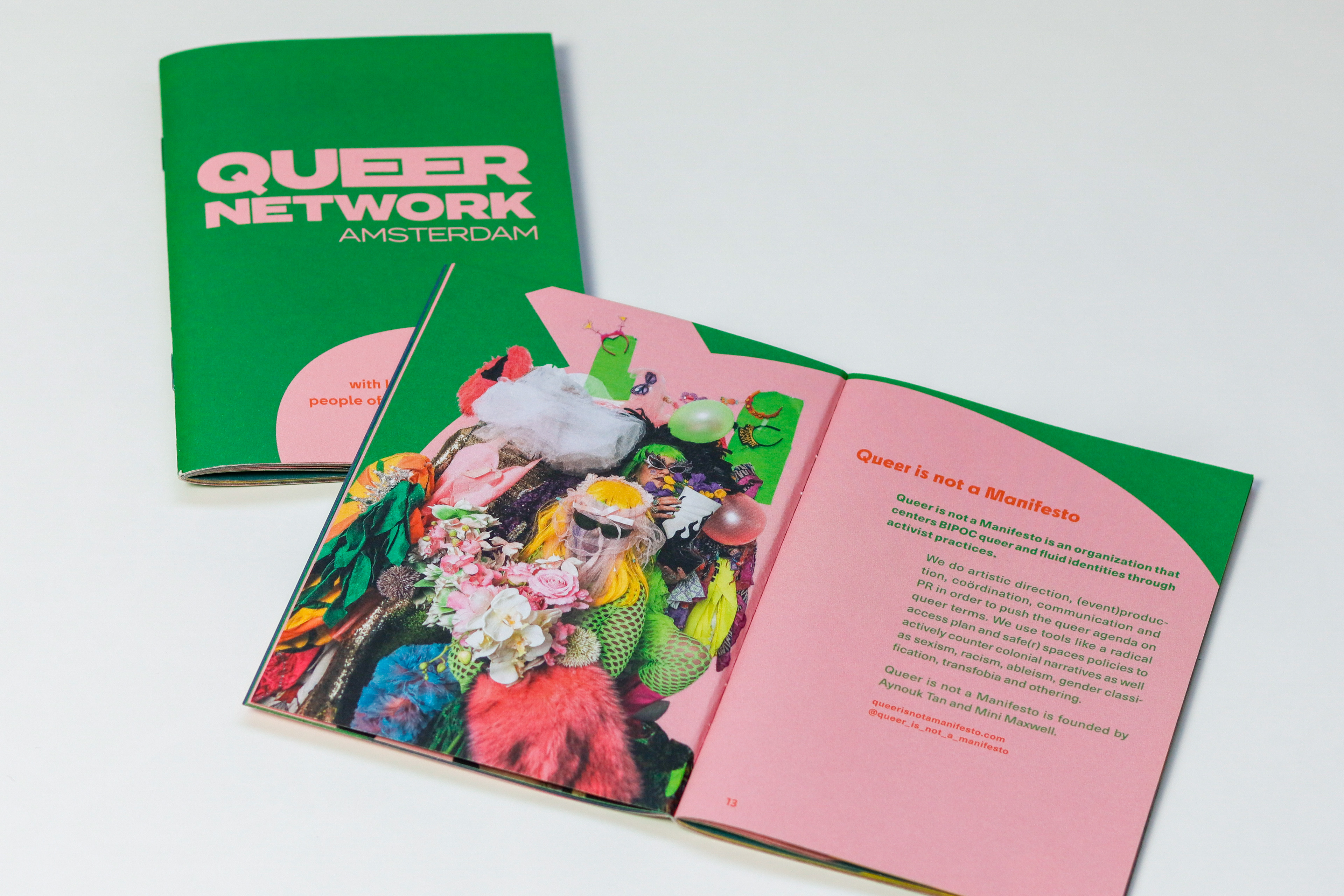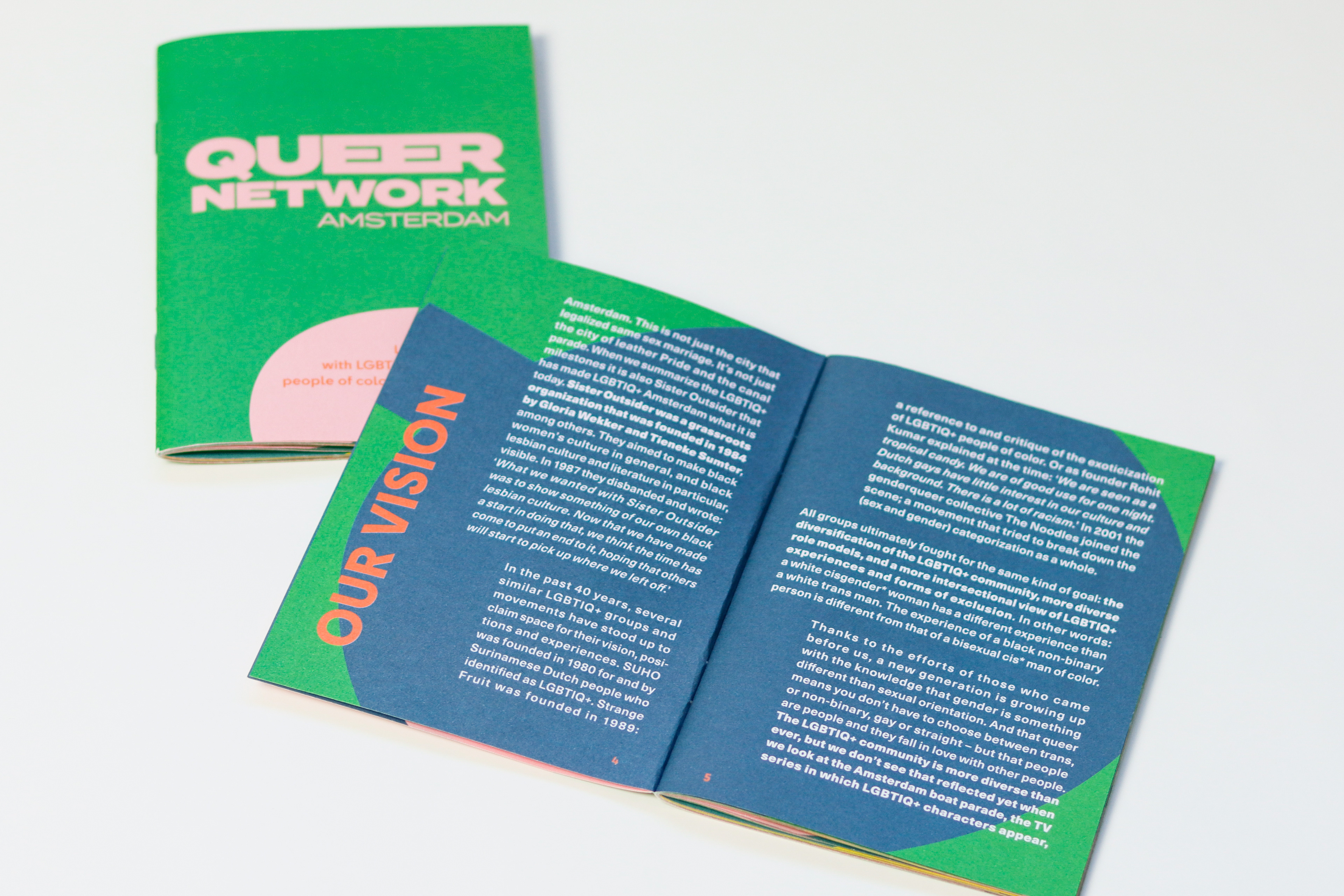 To introduce the general public to Queer Network Amsterdam I made a small booklet in which all organizations are briefly introduced. In this way we extended a communication to an 'offline' world. This booklet was widely distributed in Amsterdam during the poster campaign in the city.